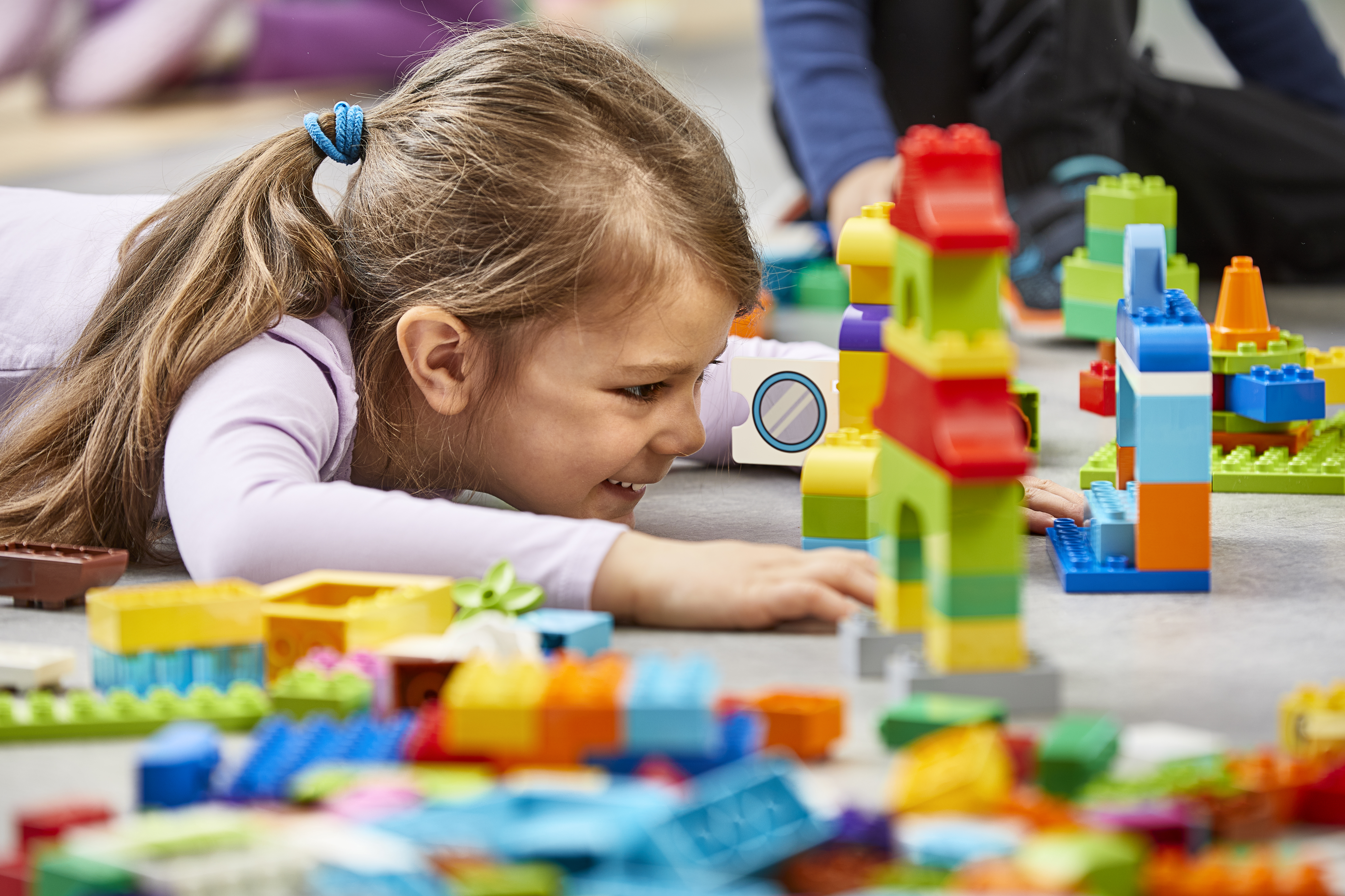 Das LEGO® Education Set Meine riesige Welt bietet spielerische Lernerlebnisse, bei denen Kindergartenkinder durch Rollenspiele, lustige Bauaufgaben und das Austauschen von Ideen die Welt kennenlernen. Dieses LEGO® Education Set fördert zudem das Selbstvertrauen der Kinder sowie wichtige Sozialkompetenzen, wie zum Beispiel gute Zusammenarbeit, Kommunikation und das Verstehen von Rollen und Verantwortlichkeiten. Rollenspiele mit Alltagsbezug Mit den insgesamt 480 farbenfrohen LEGO® DUPLO® Elementen inklusive Figuren, Fahrgestellen, Fenstern, Türen und einer Bauplatte können Gruppen von 2 bis 10 Kindern viele kreative Modelle aus ihrer Alltagsumgebung bauen – z. B. ihr eigenes Zuhause, ein Restaurant, eine Bushaltestelle, ein Krankenhaus, eine Feuerwache, ein Auto oder ein Flugzeug. Zudem können sie fantasievolle Modelle von Tieren bauen und sich kreative Geschichten ausdenken.