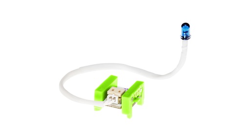 Das IR LED sendet ein Licht mit einer grösseren Wellenlänge als normales Licht, so wie das Licht aus einer Fernbedienung. Es ist unsichtbar für das Auge, jedoch können viele Digitalkameras es sehen. Versuchen Sie mit ihm den Lichtsensor oder den ferngesteuetren Schalter zu aktivieren.