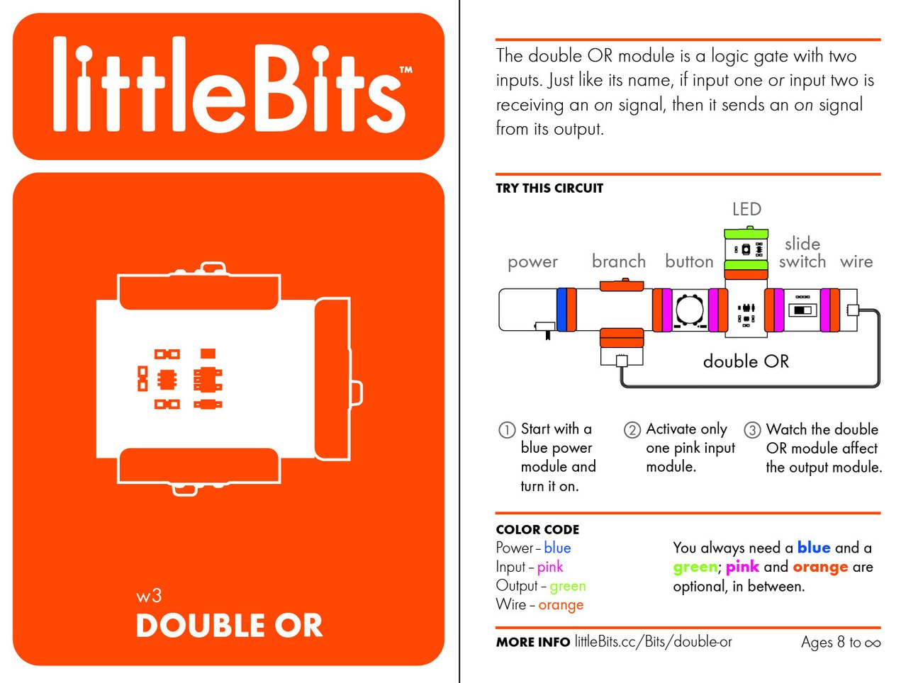 The OR Bit is a logic gate with 2 inputs. If input 1 OR input 2 is receiving an ON signal, then it sends an ON signal from its output.