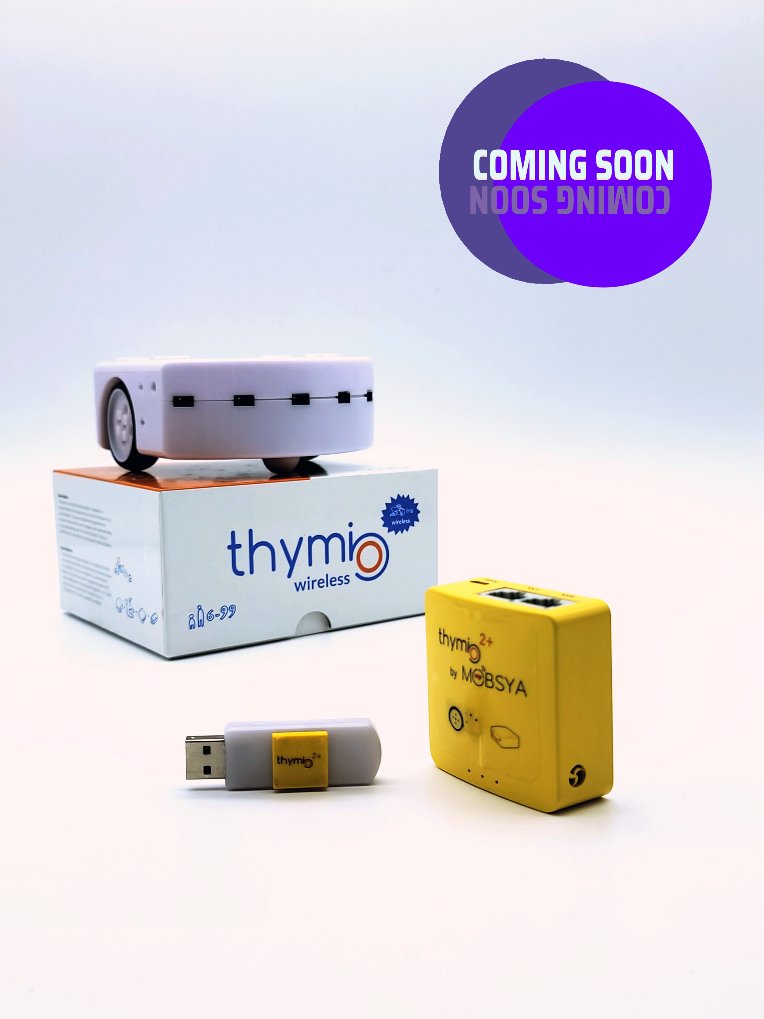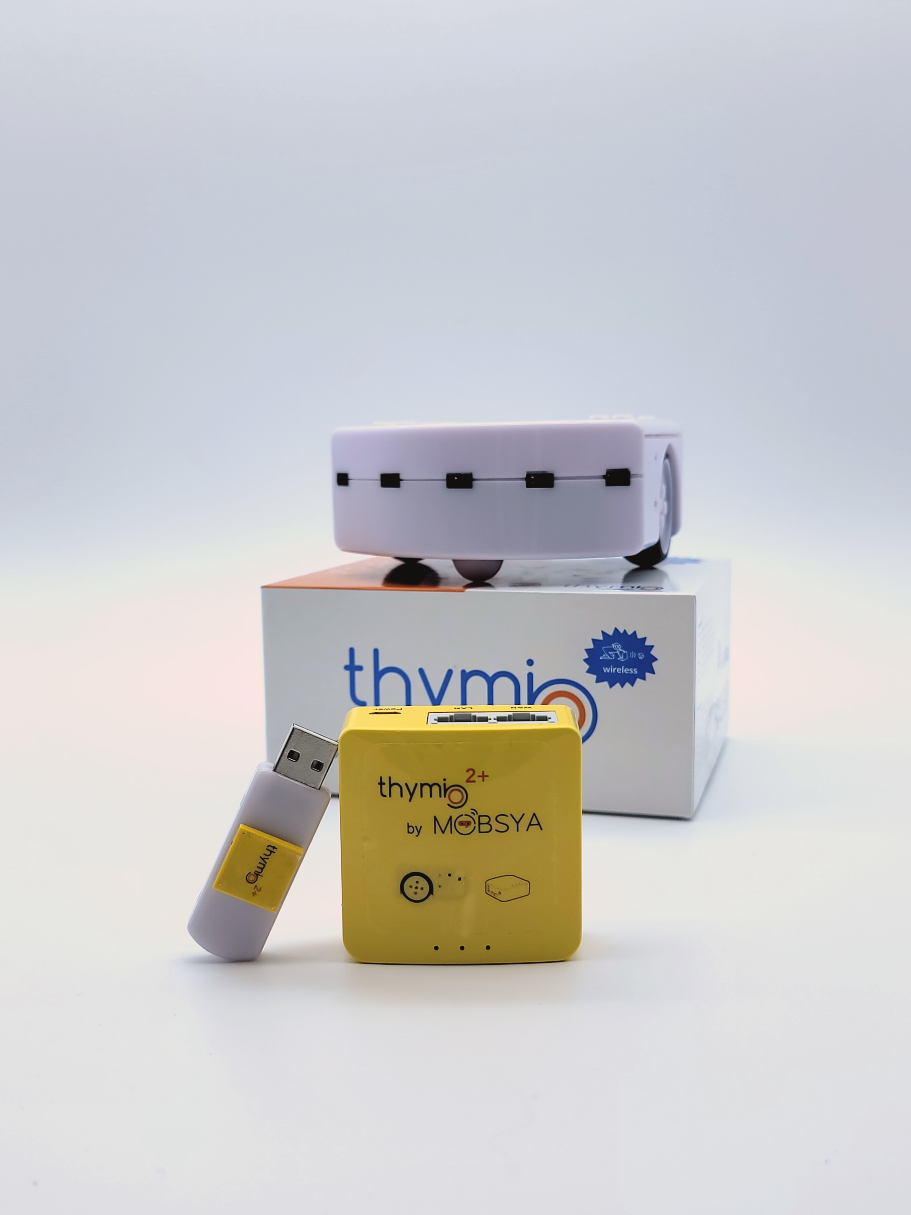 - thymio2+ ermöglicht den Anschluss mehrerer Roboter und Geräte mit nur einem USB-Dongle