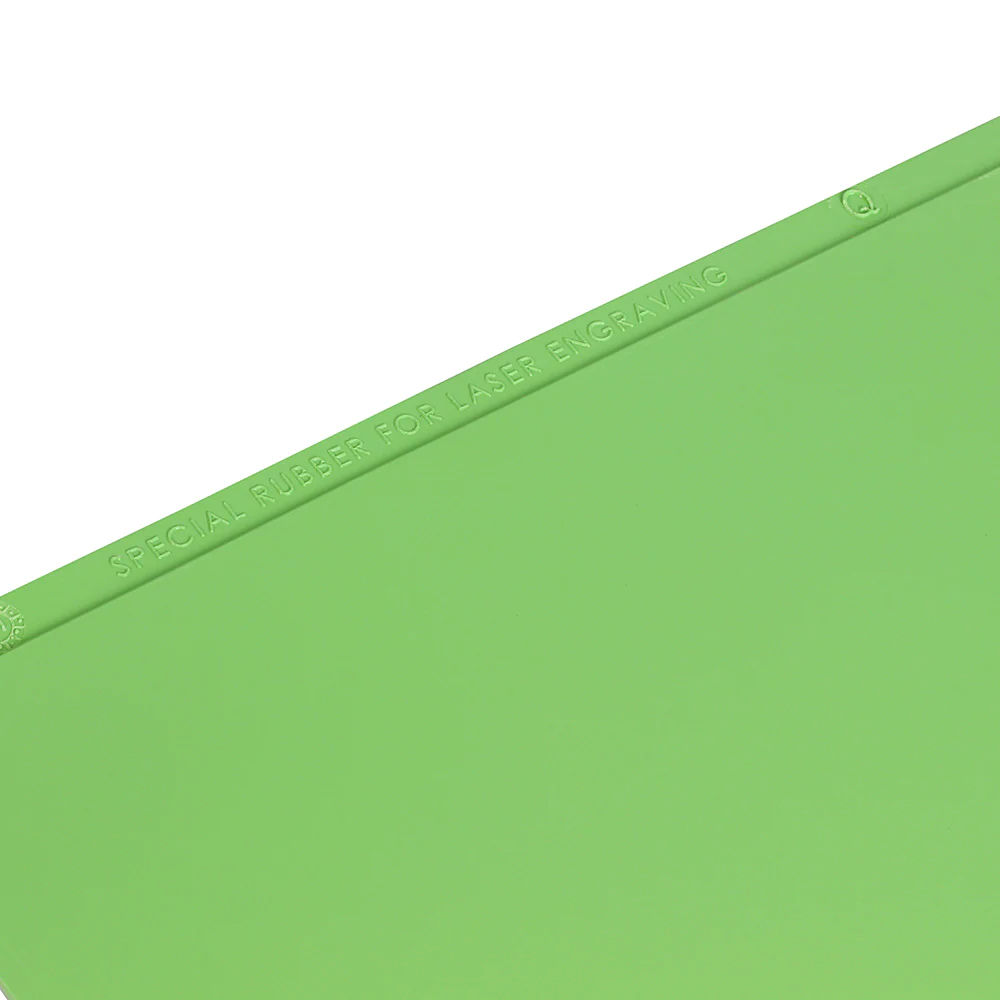 Dieser ECO-Gummi ist ein umweltfreundlicher Lasergravur-Gummi, der aus organischen Bestandteilen hergestellt wird. Eine Seite der Platte wurde aufgeraut, damit sie die Tinte besser aufnimmt. Der Gummi hat eine angenehme, leuchtend grüne Farbe und ist bereit für den Laserschneider.