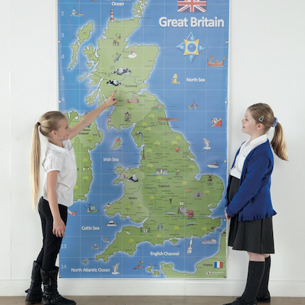 Discover the UK with this highly detailed, animated and colourful map. Use on the wall or on the floor with your Bee-Bot! A perfect cross-curricular resource, encompassing map reading skills, directional skills and more. With eyelets. Scratch and tear resistant. avalable: 145x80 cm or 210x120