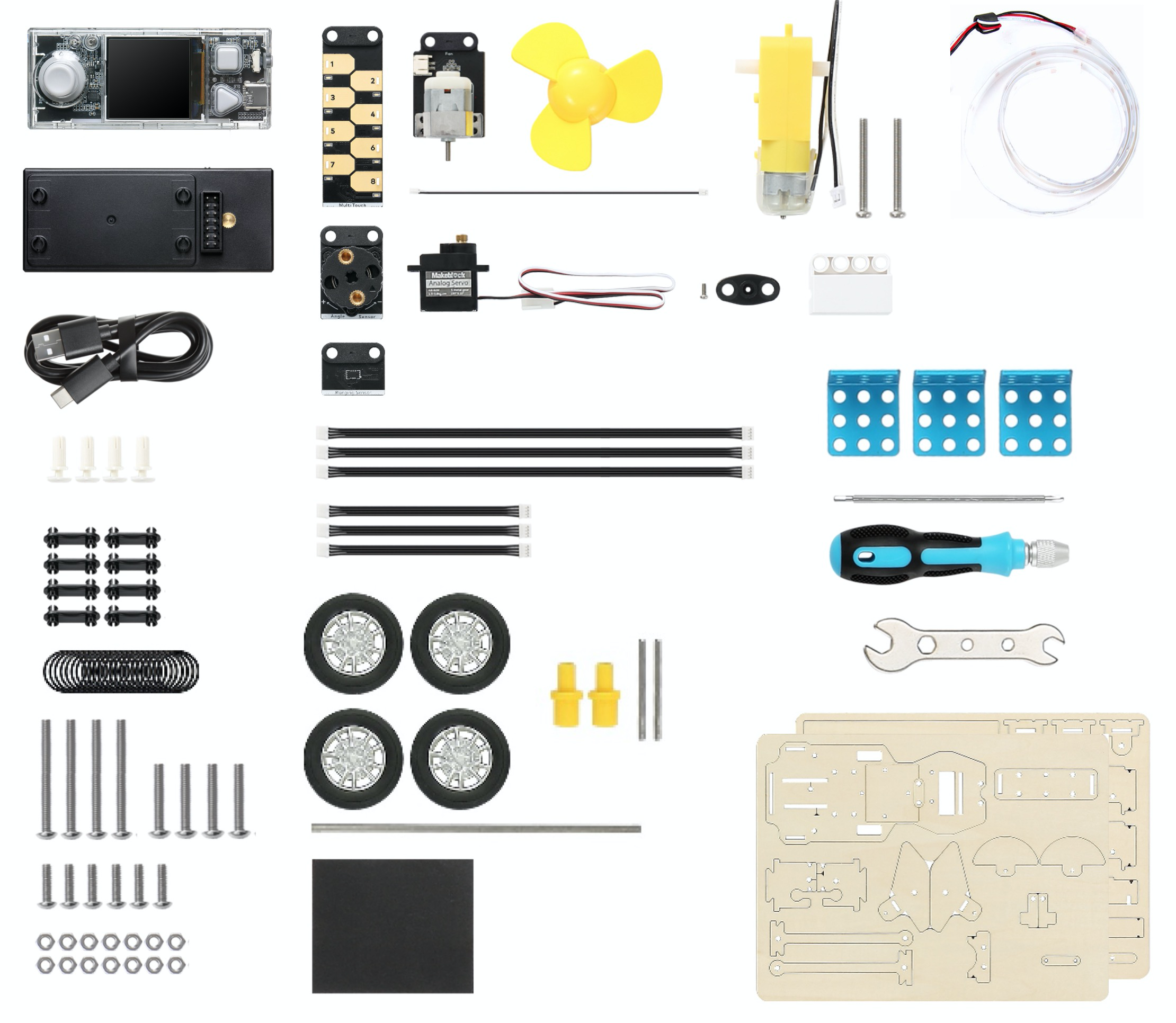 CyberPi AI & IoT Spark Kit features CyberPi and a wide range of sensors and creative hardware designed specially for teaching and competition in AIoT and Python. The kit consists of a series of mBuild modules, electronic parts, and structural parts, meeting the needs of teachers and makers who use hardware for DIY projects. It can be used with the mBuild Creative Practice Expansion Kit to extend functionality for innovative technologies, programming popularization and competitions.