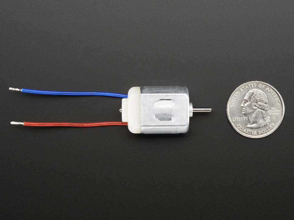 These are standard '130 size' DC hobby motors. They come with a wider operating range than most toy motors: from 4.5 to 9VDC instead of 1.5-4.5V. This range makes them perfect for controlling with an Adafruit Motor Shield, or with an Arduino where you are more likely to have 5 or 9V available than a high current 3V setting. They'll fit in most electronics that already have 130-size motors installed and there's two breadboard-friendly wires soldered on already for fast prototyping.