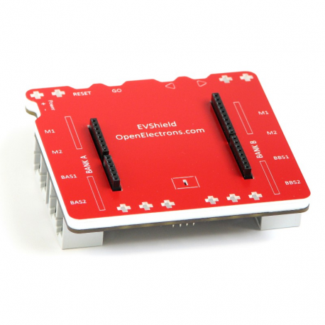 EVShield attaches directly to an Arduino and allows you to connect up to 4 NXT or EV3 motors, and 4 NXT or EV3 Sensors, and program for them through Arduino sketch. You can attach upto 6 RC Servo motors to EVShield. It has headers on top to attach existing Arduino shields.