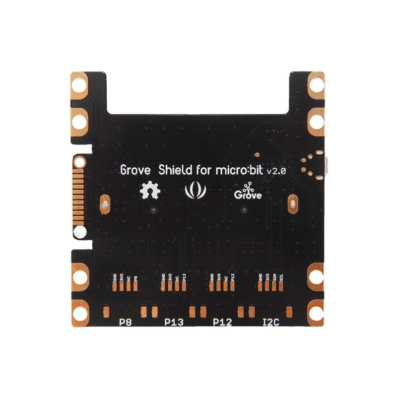 - Das Brett bricht aus; GND, 3V, P0, P1, P2, P12, P13 vom Micro: Bit-Kantenanschluss, die Stifte 14 bis 16 und IC2 sind auch über die integrierten Grove-Anschlüsse verfügbar.
