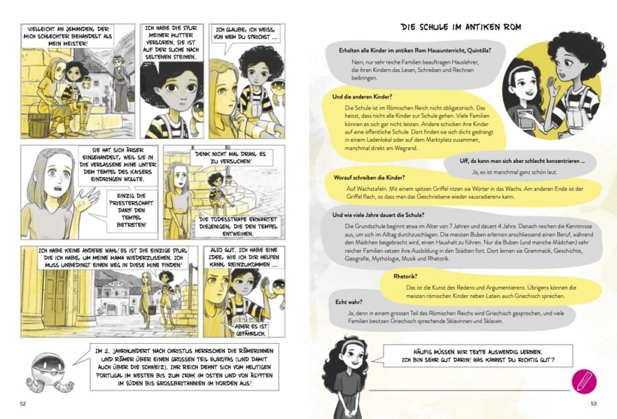 «Dieser Comic ist für alle, die Frauenpower, Zeitreise und neue Erlebnisse toll finden. Am liebsten mag ich Kira. Sie hat immer gute Ideen und ist offen für Neues.» Yama, 12 Jahre