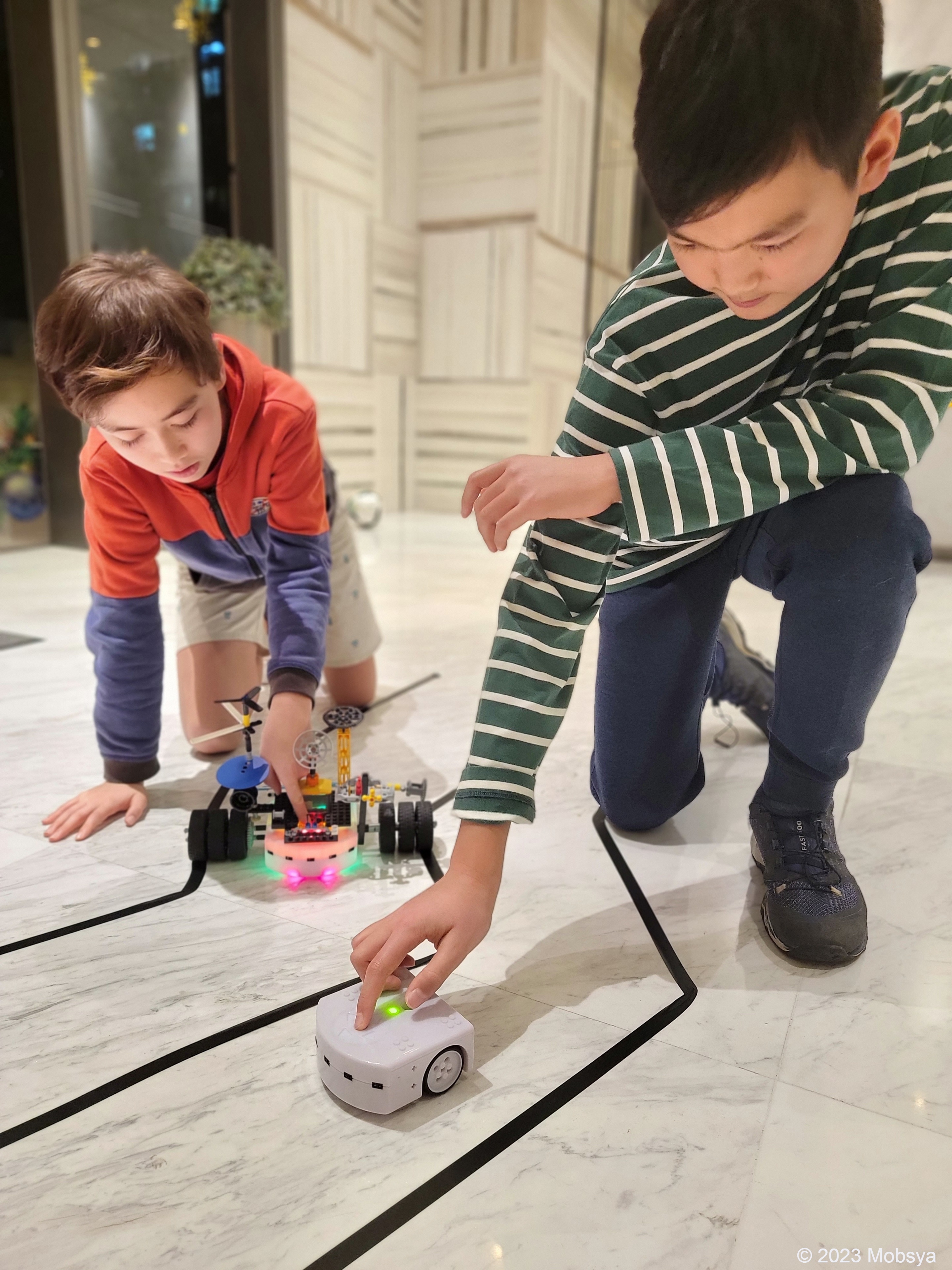 Das limitierte Jubiläumsset zum Thymio II ist jetzt bei uns erhältlich. Mit diesem Set werden Ihnen die Funktionsweisen der zwei Thymio-Bodensensoren und die Programmiersprache VPL3 näher gebracht. Eine Anleitung finden Sie via QR-Code auf der Packung.