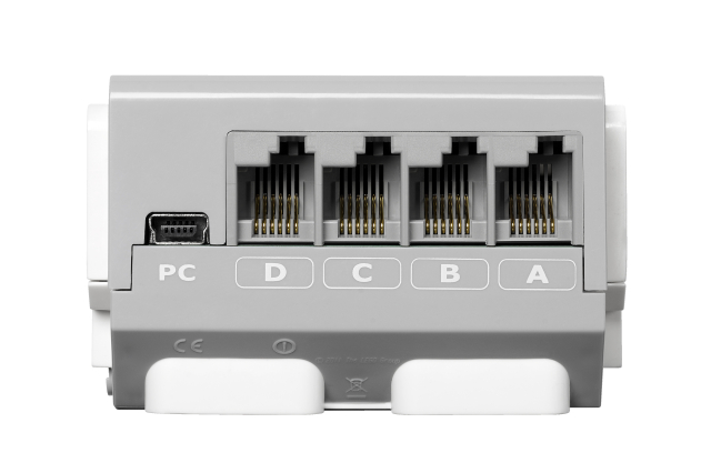 Der programmierbare intelligente EV3-Baustein ist das zentrale Element der LEGO® MINDSTORMS® Education EV3 Roboter. Das beleuchtete Bedienfeld mit sechs Tasten zeigt mit verschiedenen Farben den jeweiligen Status des Bausteins an. Weitere Ausstattungsmerkmale: Hochauflösendes Schwarz-Weiß-Display, integrierter Lautsprecher, USB-Port, Mini-SD-Kartenleser sowie jeweils vier Ein- und Ausgänge.