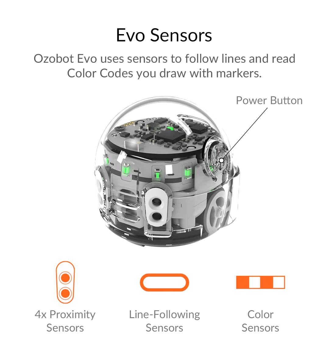 Die Vielfalt der Funktionen, die Ozobot Evo zu bieten hat, ist einfach zu erlernen, aber grenzenlos erweiterbar.Das macht den Evo extrem vielseitig!