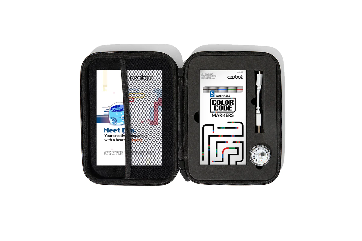 Durch eine Kombination aus Ozobot-Farbcodes und Teilen, die Linien folgen, erlaubt das Basis-Kit den Schüler:innen, mit Reihenfolgen, Logik und Problemlösungsfähigkeiten zu experimentieren. Die Farbcode-Magnete sind angemessen dimensioniert und einfach zu handhaben, ideal für junge Lernende, die gerade erst in die Welt des Codierens eintauchen.