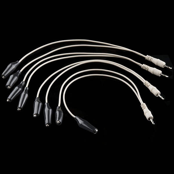 Dem Board liegen 4 Kabel bei (2.5mm Audio auf zwei Krokodilklemmen). Im Lieferumfang befindet sich allerdings KEIN miniUSB-Kabel bei.
