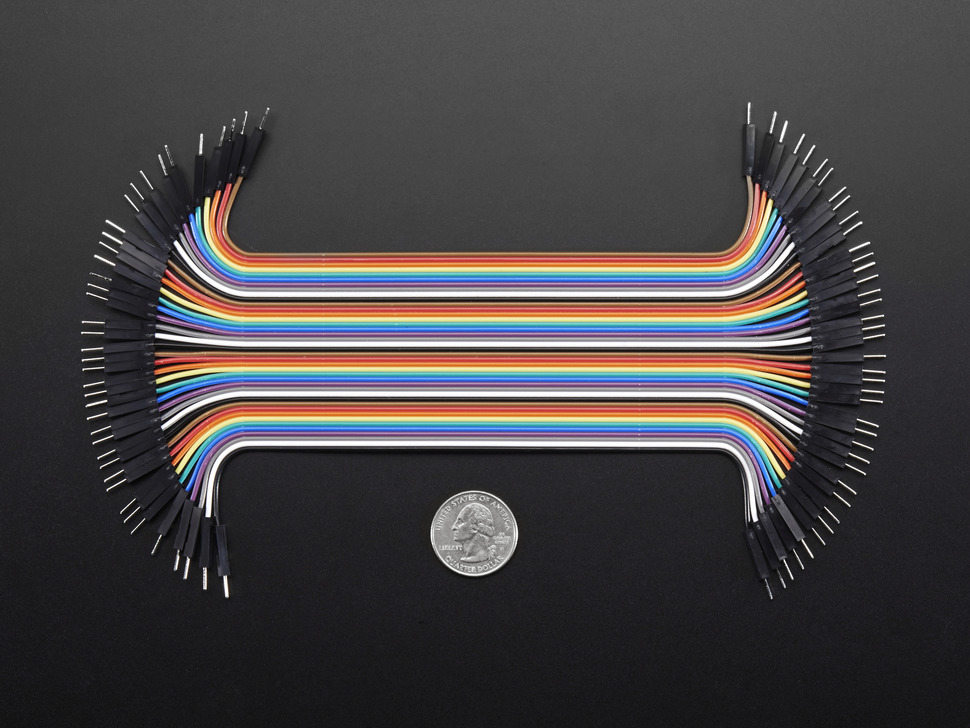 Handy for making wire harnesses or jumpering between headers on PCB's. These premium jumper wires are 6" (150mm) long and come in a 'strip' of 40 (4 pieces of each of ten rainbow colors). They have 0.1" male header contacts on either end and fit cleanly next to each other on standard-pitch 0.1" (2.54mm) header. The best part is they come in a 40-pin ribbon cable. You can always pull the ribbon wires off to make individual jumpers, or keep them together to make neatly organized wire harnesses.