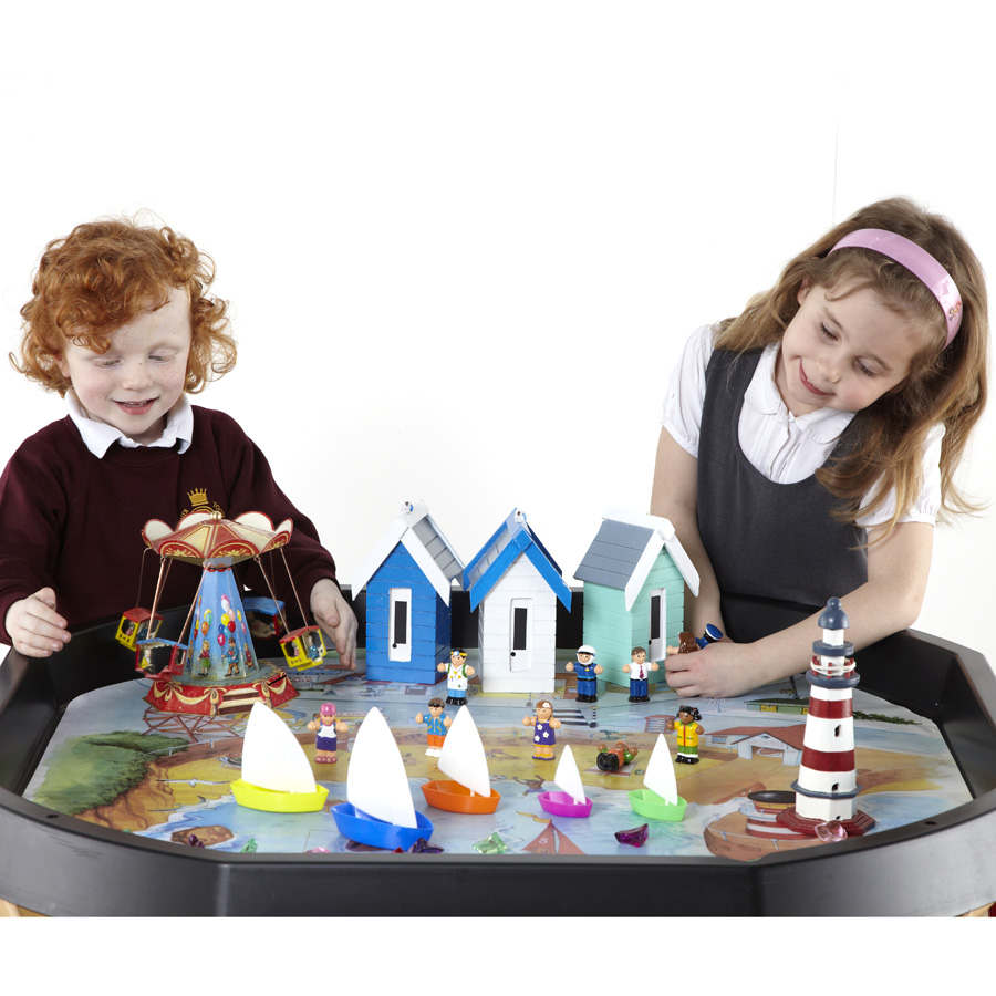 Machen Sie einen Ausflug ans Meer und paddeln Sie im Meer oder bauen Sie Sandburgen. Aus abwischbarem Material hergestellt. Geeignet zur Verwendung mit nassen und trockenen Materialien, z.B. Sandmuscheln und Wasser für Sinnesspiele.
