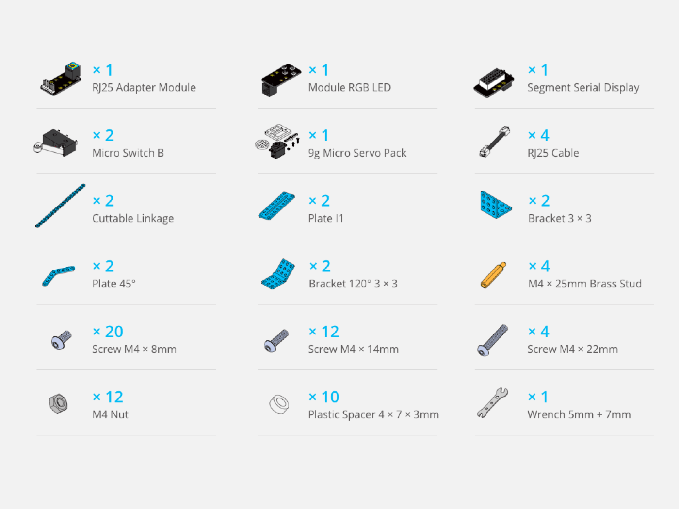Dieses Paket enthält 6 Zusatzkoffer für mBot und 2 für mBot Ranger und bereichert die Bewegungssteuerung und das Erscheinungsbild Ihrer Roboter.